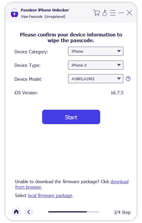 Paso 2: Accede a la función Borrar código y luego descarga el firmware correspondiente a tu iPhone.